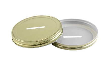 These lids fit regular mouth jars, and the slot is perfect to make a habit of putting away some savings. If you are looking for a wide mouth coin slot lid, we have those too, right here!