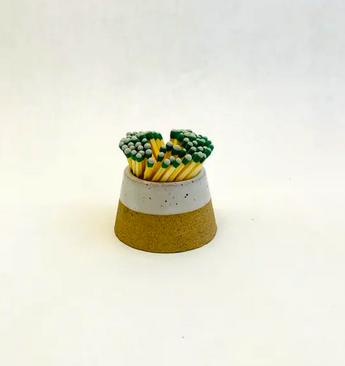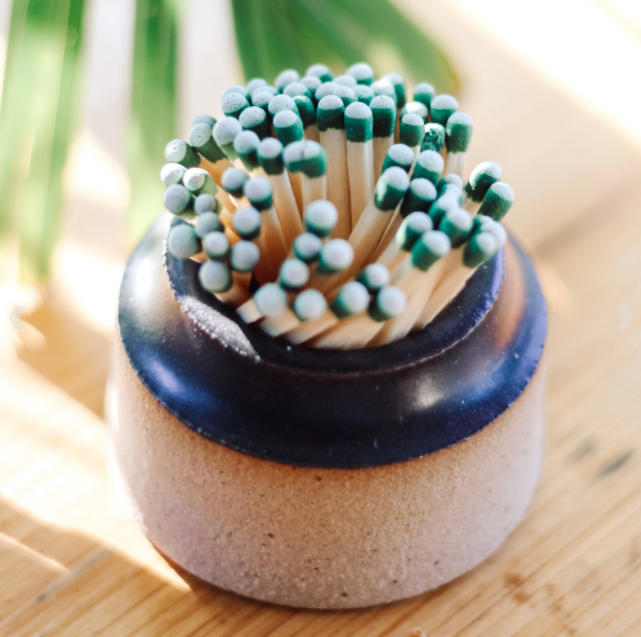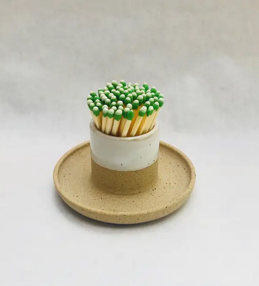 Strike the included "strike anywhere" matches A N Y W H E R E on the rough ceramic surface of this holder. These matches are specially designed to strike on this surface and regular matches will NOT light if you strike them here!